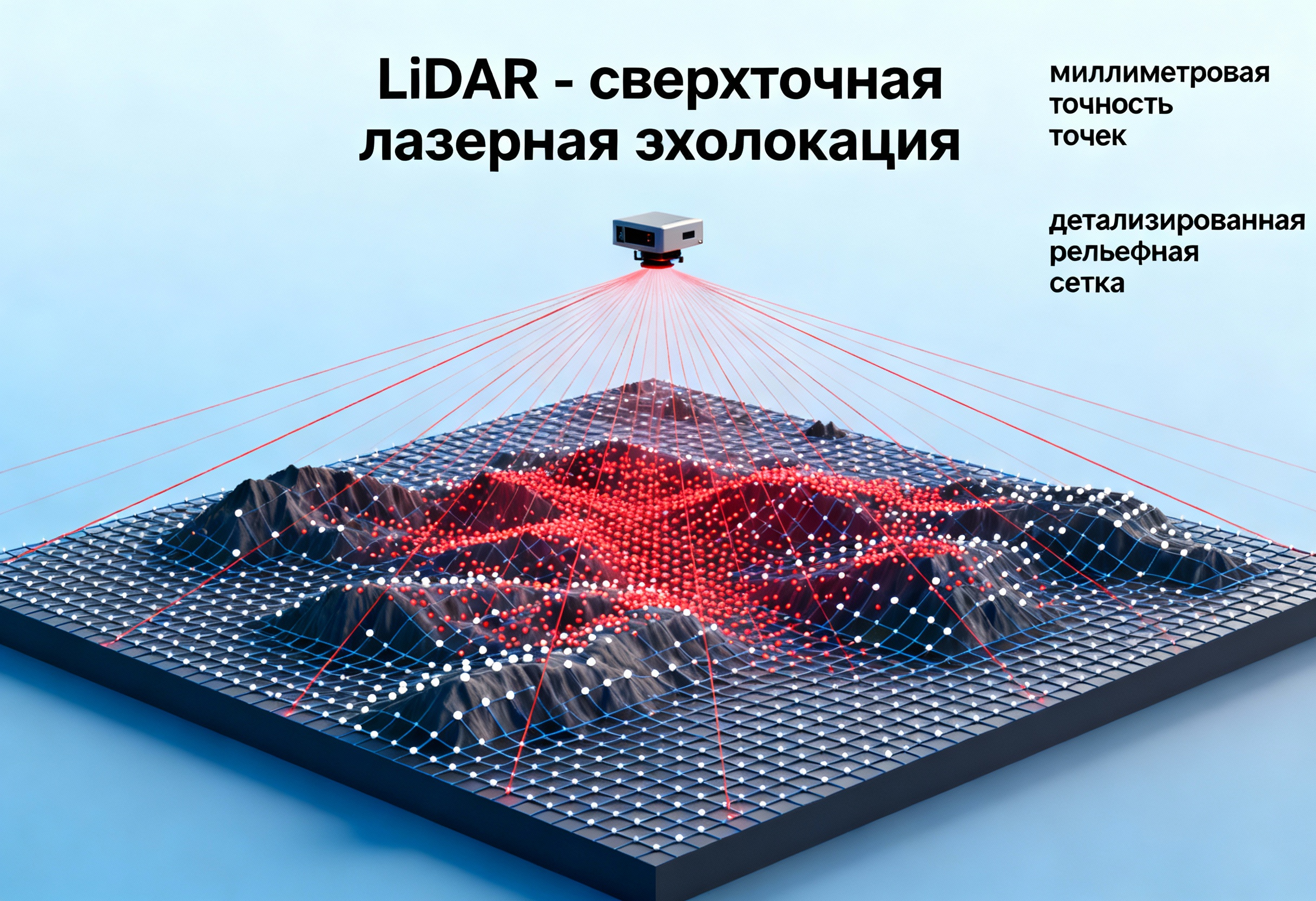 Давайте отбросим сложные термины и представим LiDAR как у. Система испускает миллионы микроскопических лазерных импульсов в секунду и с наносекундной точностью замеряет время их возврата. Зная скорость света, процессор вычисляет расстояние до каждой точки в пространстве. По сути, это мгновенное создание облака точек — трехмерного «отпечатка пальца» любого объекта или ландшафта.